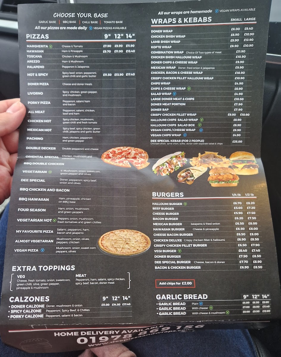 Welcome to DEE PIZZA & WRAPS, your go-to destination for delicious and mouthwatering meals in the heart of Llangollen, UK. Located at 4 Oak St, this charming eatery has quickly become a favorite among locals and visitors alike. With a menu that boasts not only crowd-pleasing pizzas but also fantastic wraps, DEE PIZZA & WRAPS is redefining takeaway dining.
